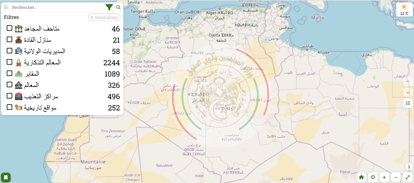 خريطة تفاعلية للمواقع التاريخية للثورات في الجزائر